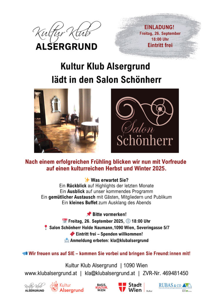 Vorstellung Rückblick und Ausblick des Klubs Alsergrund mit kleinem Buffet